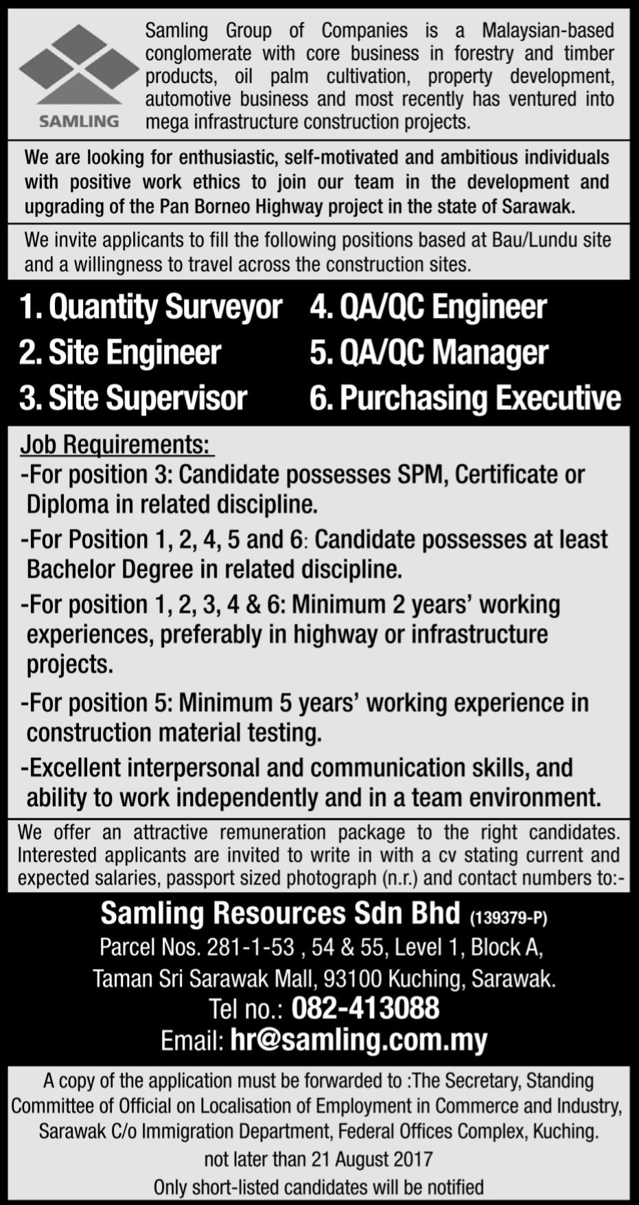 Sarawak tarikh tutup permohonan. Portal kerjaya jawatan kosong terkini hanya menyiarkan kembali untuk memudahkan permohonan anda. Bagi yang berminat sila hantar permohonan secara online dengan mendeposit resume anda atau mengemail resume anda ke alamat dibawah. Dalam ekonomi hari ini ramai orang hampir ke tahap terdesak untuk mencari pekerjaan jawatan kosong kerajaan terkini 2017 dan apabila tawaran pekerjaan iklan kerja kosong sarawak yang.