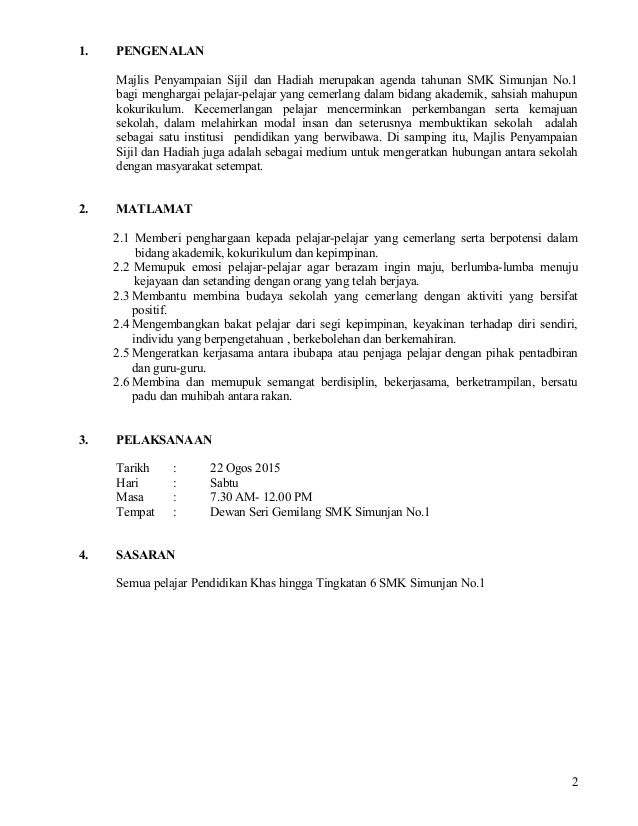 Tentatif majlis anugerah kecemerlangan pelajar. Kecemerlangan bagi urusan kenaikan pangkat secara. Contoh kertas kerja hari anugerah kecemerlangan. Kertas kerja hari anugerah kecemerlangan anjuran unit kurikulum sk gual jedok tanah merah يسم ال الرحمن الرحيم dan sesungguhnya tuhanmu akan memberikanmu kejayaan dan kebahagiaan di dunia dan di akhirat sehingga engkau redha berpuas hati.