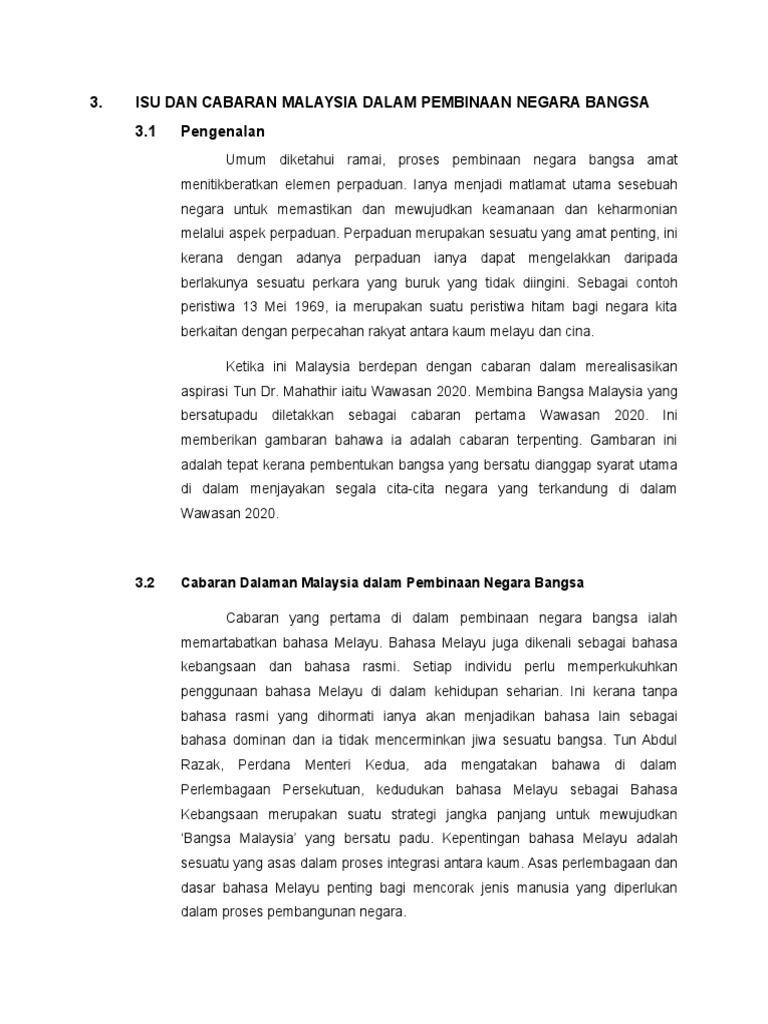 Skema jawapan pembinaan negara dan bangsa malaysia. Ketegasan orang melayu membantah malayan union di bawah pimpinan dato onn ja afar perpaduan di kalangan orang melayu yang terdiri daripada golongan raja dan rakyat perpaduan mereka dapat mengatasi pihak yang menyokong malayan union keupayaan. Pengenalan 5 markah jelaskan secara ringkas tentang latar belakang pembinaan negara dan bangsa melayu tradisional. Jelaskan perkembangan pembinaan negara bangsa malaysia.