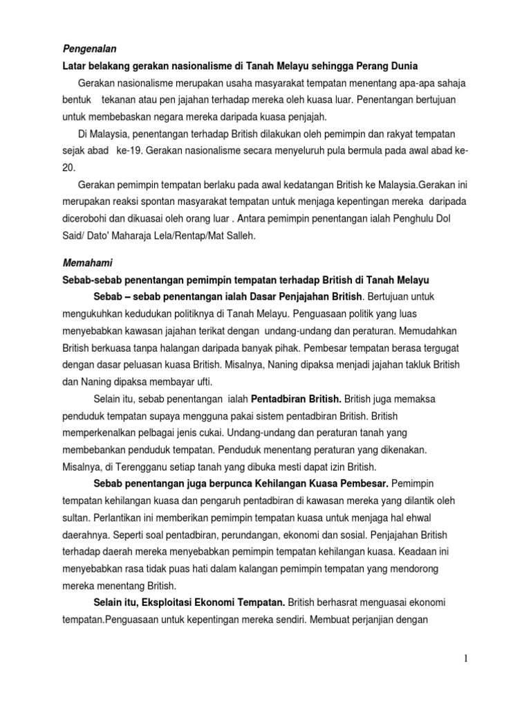Penentangan rentap pada tahun 1853 rentap telah mengetuai pasukan orang iban yang menyerang pasukan british di skrang yang diketuai oleh william brereton. Dato maharaja lela membuat kubu di pasir salak pada februari 1875. Mesyuarat antara dato maharaja lela dengan pembesar pembesar melayu di durian sebatang menentang undang undang british. 1st 3rd grade.