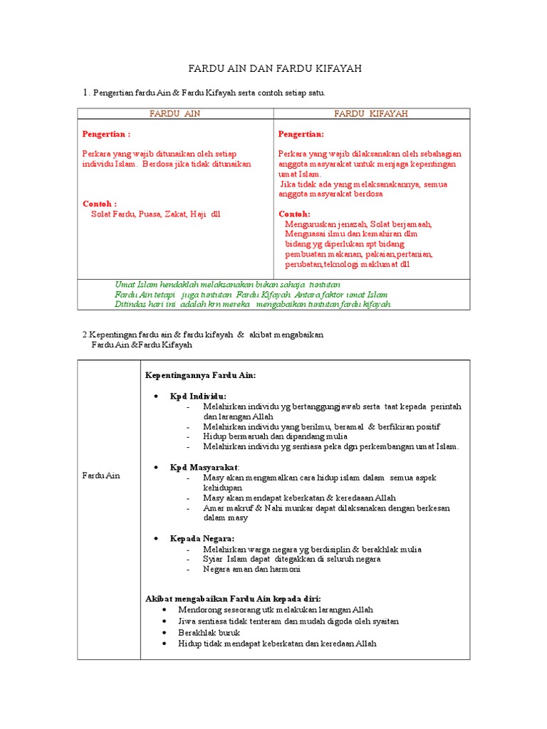 Yusuf al qardawi dalam kitab al hillul islami telah menggariskan bidang bidang yang perlu dipandang dan ditangani oleh umat islam sama ada pihak pemerintah mahupun masyarakat dalam proses mengembalikan semula. Fardhu ain perkara yg wajib ditunaikan oleh setiap umat islam berdosa jika tidak melakukannya contoh solat fardhu puasa zakat haji dan sebagainya fardhu kifayah perkara yg wajibdilaksanakan oleh sebahagian anggota masyrakat jika tidak ada yg melaksanakannya berdosa semuanya contoh. Pihak yang manakah berkaitan dengan gambar tersebut. Fardhu kifayah ialah perkara yang apabila dilaksanakan oleh sebahagian manusia maka gugurlah kewajipan terhadap manusia yang lain seperti mengetahui perkara secara terperinci tentang sesuatu fardhu ain hukum hukum cabangnya dan dalil dalilnya daripada al quran al sunnah ijmak dan qiyas ataupun dalil dalil lain yang mengikutinya juga mengetahui seluruh perkara yang diperlukan oleh umat.