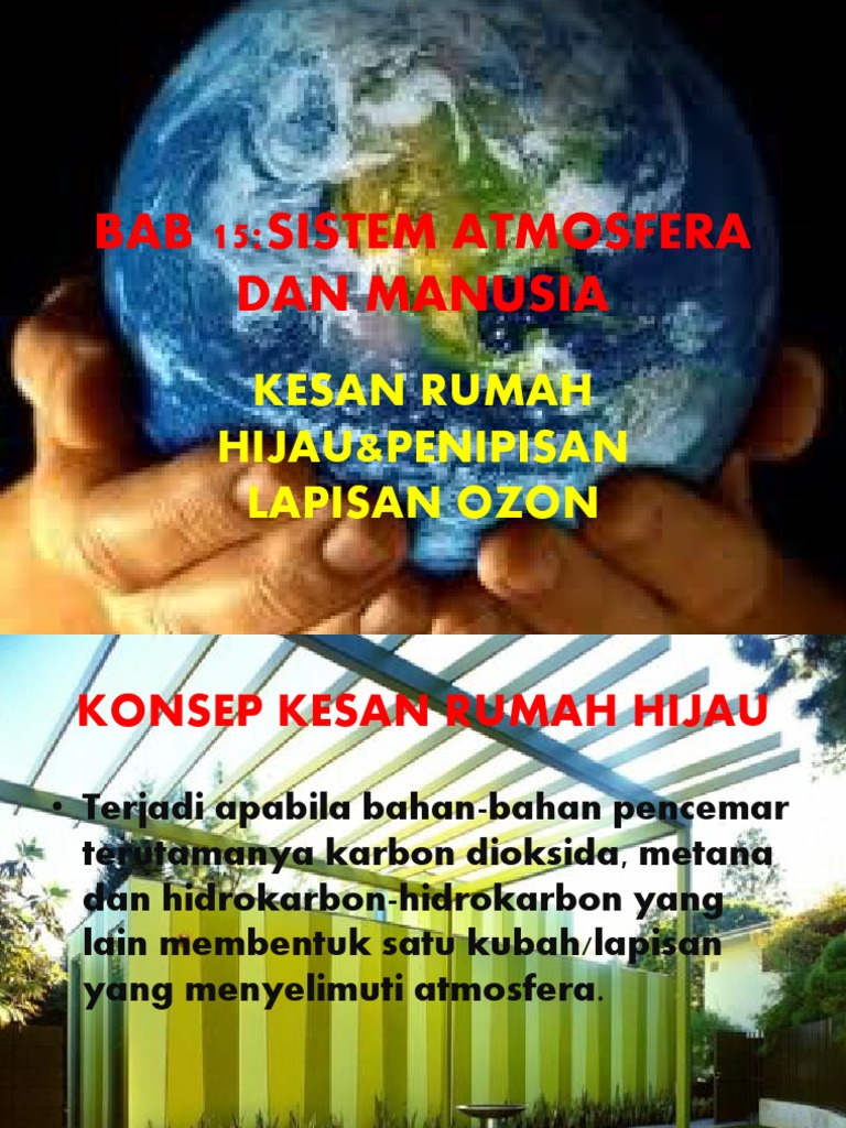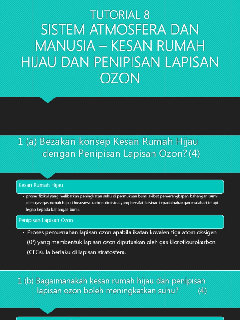3 regim wilayah daripada sumber sumber sungai tasik kolam. Membunuh sistem petalian manusia dan binatang. Atmosfera dibahagi kepada 5 lapisan. Kesan penipisan lapisan ozon bertambahnya sinaran ultra ungu ke permukaan bumi meningkatkan suhu bumi.