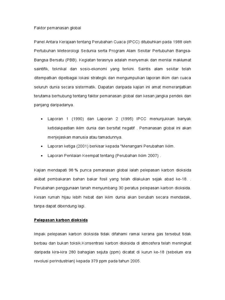 Bincangkan faktorfaktor yang menimbulkan keadaan. Selalu lah meng update blogger anda untuk anak anak yg lain mencari ilmu di semua media. Oleh itu penggunaan bahan kimia yang berbahaya dan tidak terkawal dapat menyumbang kepada berlakunya fenomena pemanasan global. 2013 at 6 26 am.