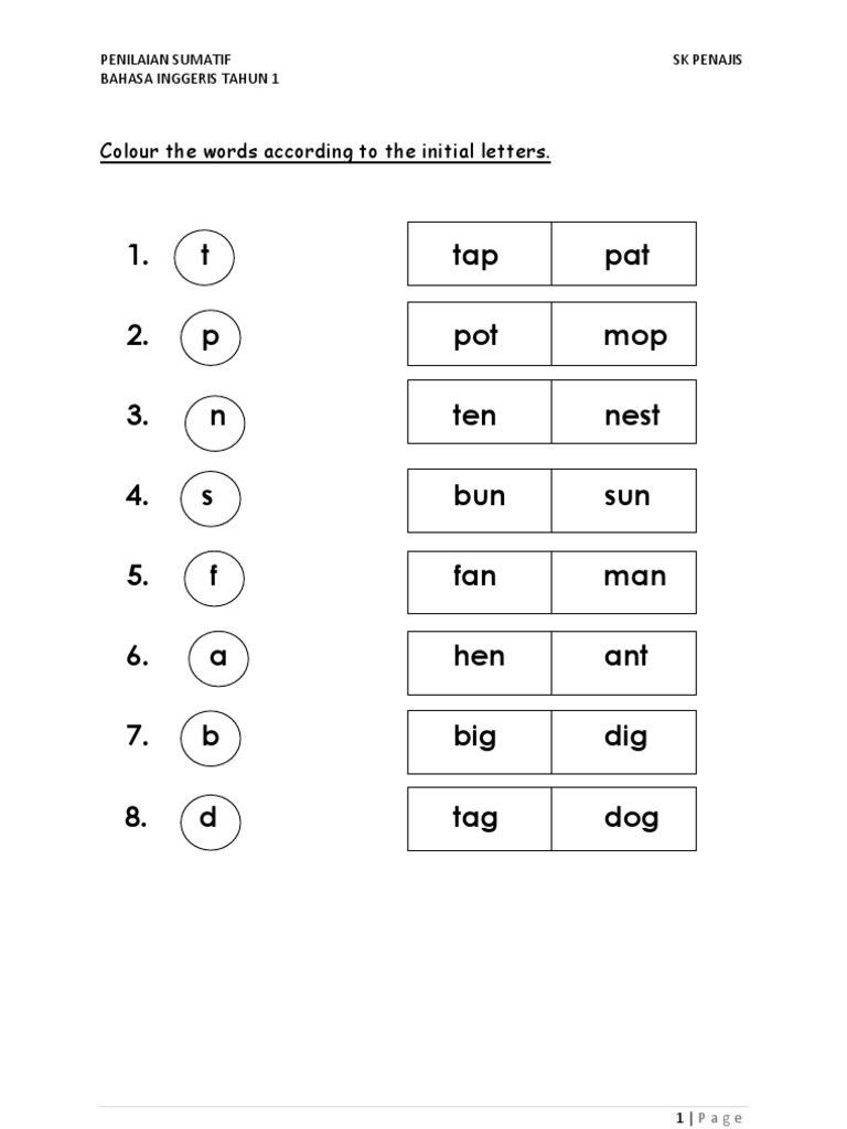 Berikut merupakan soalan bahasa inggeris pemahaman atau kertas 1 tahun 1. Klik untuk muat turun. Guru guru perlu melaksanakan pengajaran phonics selama 4 minggu bermula dengan minggu transisi tahun 1. Year 1 mid term assessment 2018 teacherfiera.