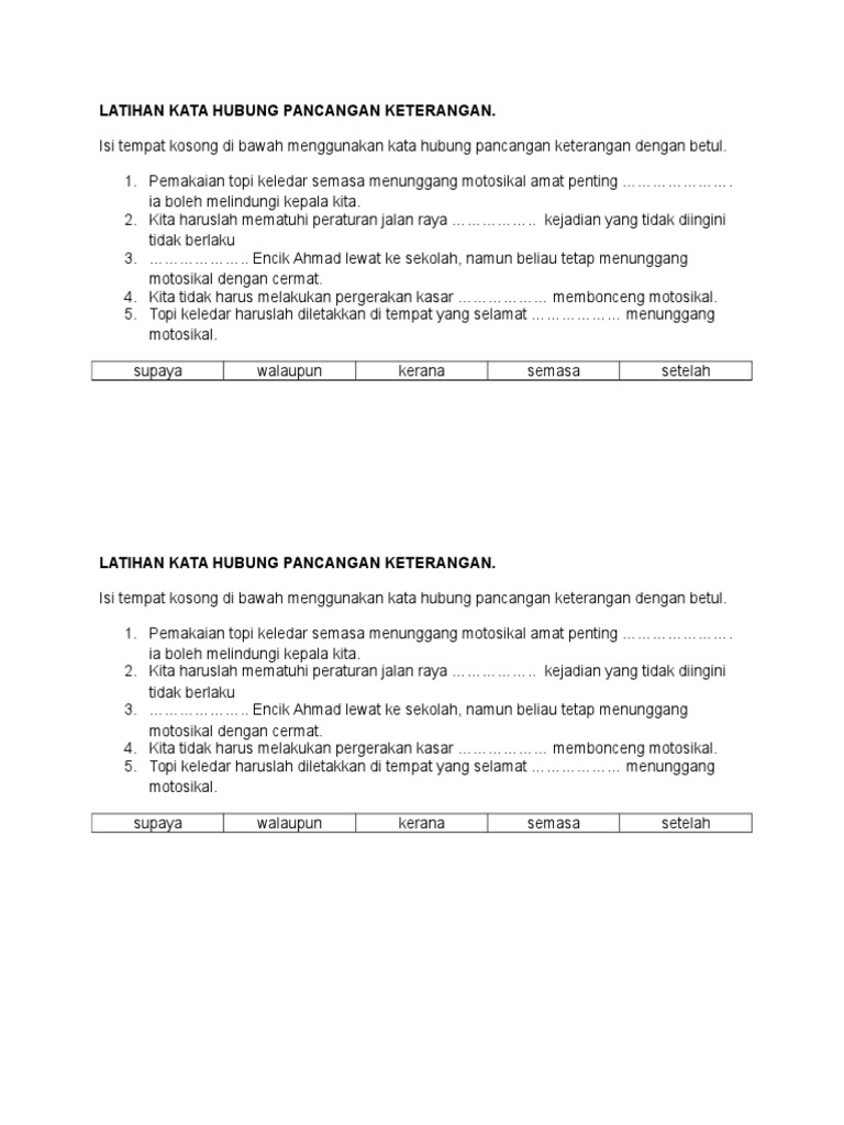 Kata jenis ini han. Tq atas teks latihan ini semoga allah merahmati kamu sekeluarga di dunia dan akhirat. Download view latihan kata hubung pancangan keterangan as pdf for free. Bkata penyambung ayat terbahagi kepada dua iaitu kata hubung gabungan dan kata hubung pancangan.