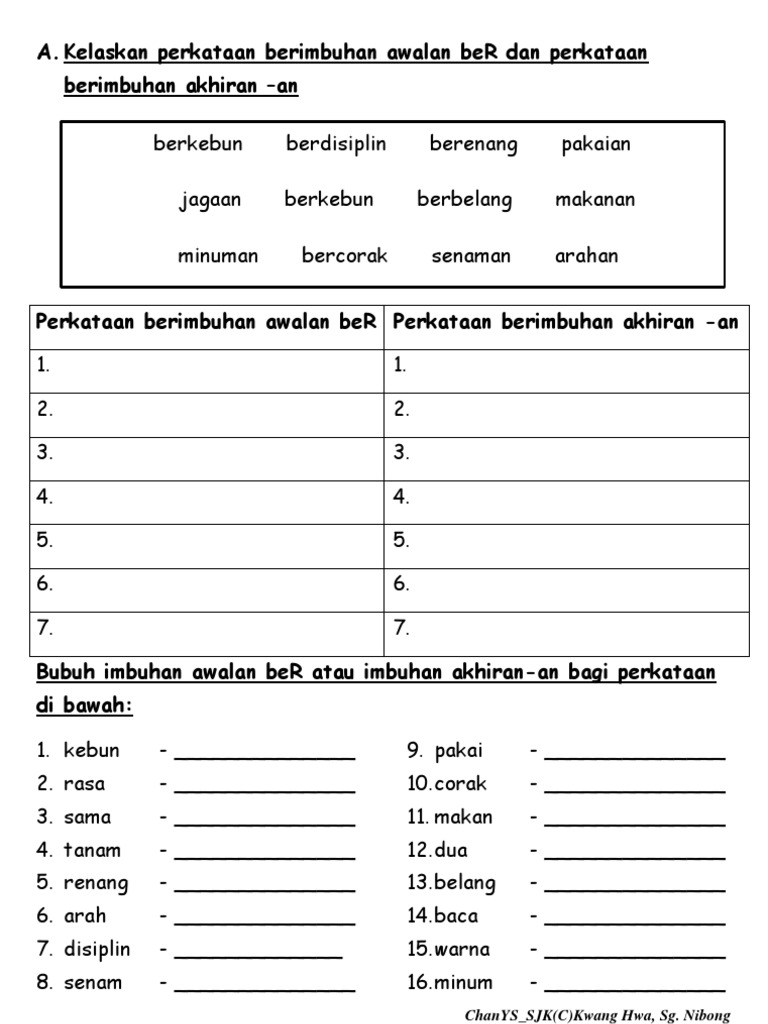 Latihan imbuhan yang disediakan ini sesuai untuk murid tahun 1 tahun 2 dan tahun 3.