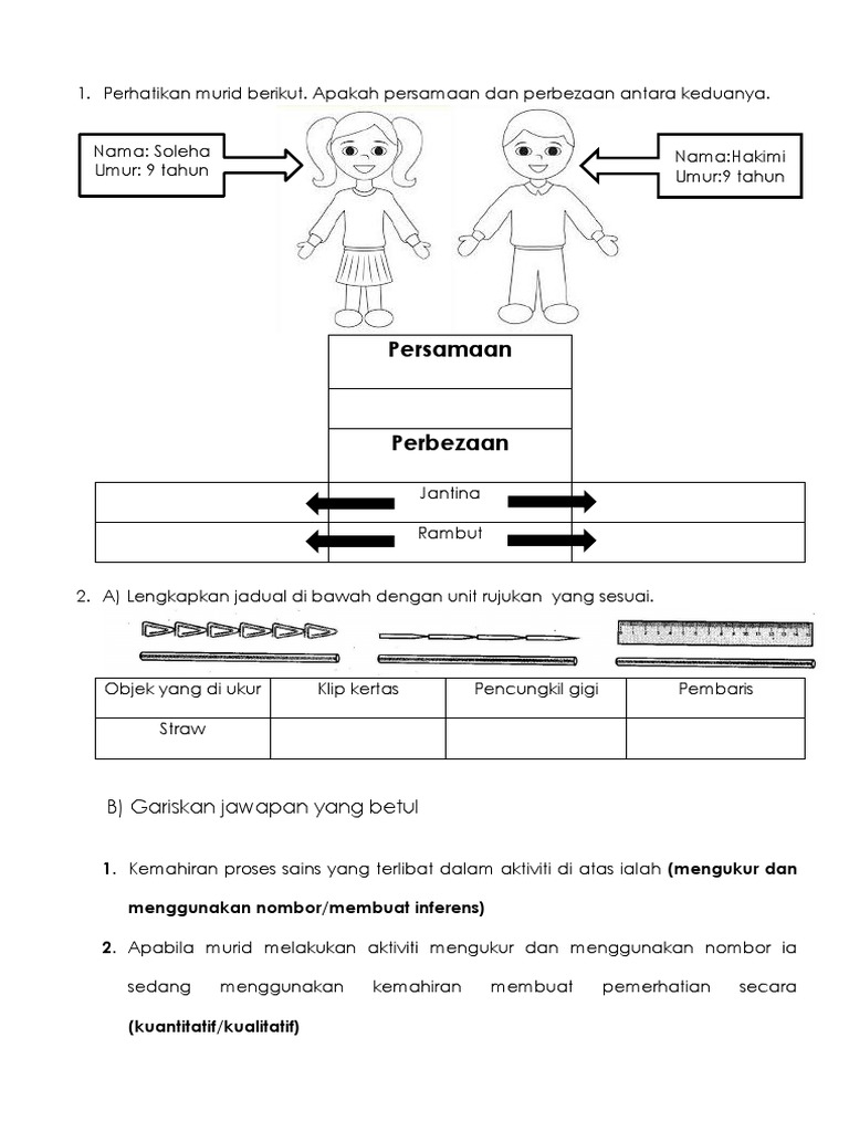 Latihan kemahiran saintifik tahun 3. Dunia sains dan teknologi tahun 3 dunia sains dan teknologi tahun 3. Para pelajar perlu diuji melalui pelbagai kaedah penilaian bagi mengetahui sejauh mana pemahaman mereka dengan kemahiran yang telah diajar oleh guru. Ciri ciri pemerhatian organ deria yang digunakan 1. Murid diminta memerihalkan objek tersebut dengan menggunakan deria yang sesuai iaitu deria lihat bau dengar rasa lidah dan rasa sentuh.