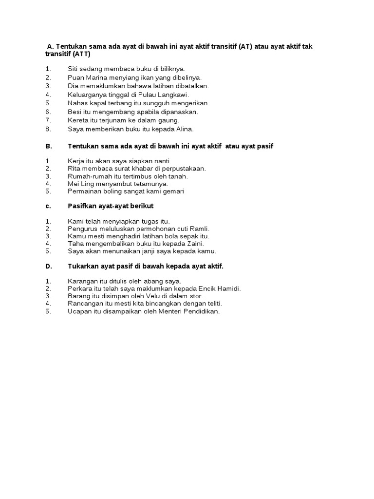 Nik safiah karim 2015 menyatakan ayat aktif ialah ayat yang mengandungi kata kerja yang mengutamakan subjek asal sebagai judul atau unsur yang diterangkan. Pilih ayat yang betul. Sila emailkan kepada saya dengan kadar segera. A ayat penyata 1.