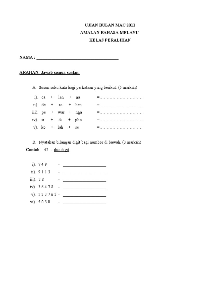 Related posts to soalan amalan bahasa melayu peralihan soalan amalan bahasa melayu peralihan 2020 06 10t23 11 00 07 00 rating. Refleksi pelajar dapat membuat latihan dengan baik. Yang kurik kundi yang merah saga. Rancangan pengajaran tahunan abm tingkatan peralihan 2011 terkini.
