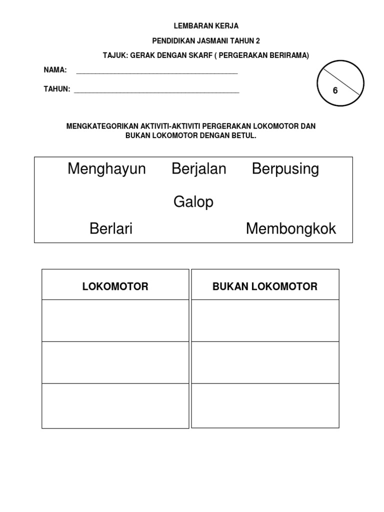 Lembaran Kerja Pergerakan Lokomotor Dan Bukan Lokomotor