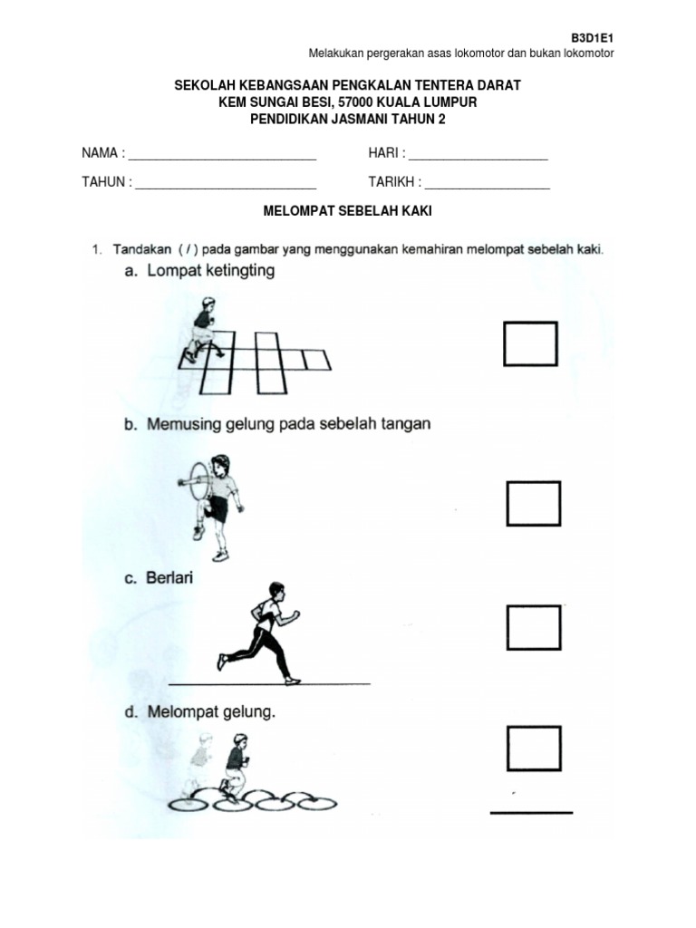 Lkpd yang disusun dapat dirancang dan dikembangkan sesuai dengan kondisi dan situasi kegiatan pembelajaran yang akan dihadapi. Institut perguruan raja melewar seremban negeri sembilan jabatan pendidikan jasmani 2007 pendidikan jasmani dan kesihatan pergerakan asas lokomotor bukan lokomotor dan manipulasi alatan vickneswaran a l balakrishnan program perguruan pendidikan sekolah rendah pengajian 4 tahun pendidikan jasmani pendidikan kesihatan. 5 4 5 bekerjasama dalam kumpulan semasa melakukan aktiviti. Pergerakan lokomotor merupakan pergerakan yang melibatkan otot otot kasar seperti melompat berjalan berlari dan sebagainya.