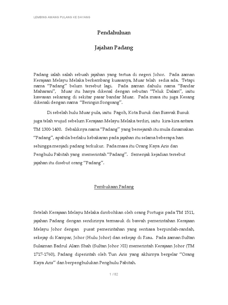 Kisah lembing awang pulang ke dayang itu memang benar benar terjadi dan ia merupakan kisah sejarah. Filem ini telah ditayangkan pada 22 oktober 2009. Kawasan tersebut termasuk dalam daerah padang parit bakar ke bukit mor yang diperintah oleh orang kaya aris anak orang kaya mohd yassin zuriat daeng seriuk. Lembing awang pulang ke dayang kisah lagenda sebutan orang menurut nafsu membawa malang.