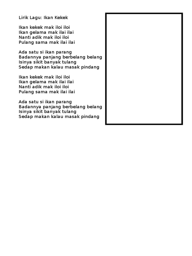 Ikan kekek mak iloi iloi ikan gelama mak ilai ilai nanti adik mak iloi iloi pulang sama ma. 1045 hits lirik lagu ikan kekek nadir mari bersama terkenang saat yang indah apabila jiwa kita terikat dengan cinta yang sempurna dan mimpi yang indah irama yang merdu menyinari memori ini dan khayalan aku membawa cahaya rindu yang pastinya buat ku j. Lirik lagu ikan kekek nadir. Mari bersama terkenang saat yang indah apabila jiwa kita terikat dengan cinta yang sempurna dan mimpi yang indah.