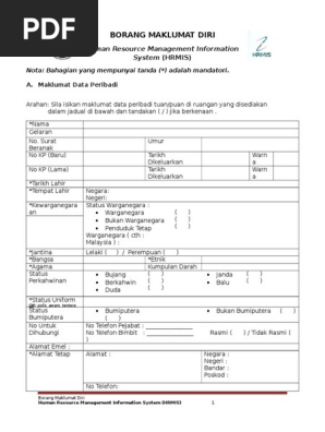 K p lama tarikh lahir. Jika anda mempunyai sebarang permohonan untuk mendapatkan maklumat mengenai jabatan tenaga kerja semenanjung malaysia jtksm sila isi borang permohonan mendapatkan maklumat di bawah. Borang maklumat diri human resource management information system hrmis borang maklumat diri human resource management information system hrmis nota. Awam korporat swasta badan berkanun potong mana mana yang tidak berkenaan waris adalah ibu bapa adik.