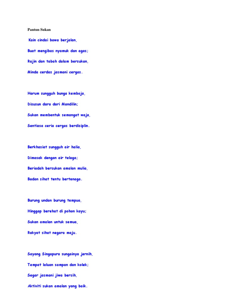 Kementerian pelajaran malaysia melancarkan dasar 1 murid 1 sukan kerana memegang prinsip badan sihat otak cerdas. Mekar sejambak bunga gubahan jatuh sekuntum di atas peti membaca itu suruhan tuhan al alaq diturun menjadi bukti. Langkah berkesan cergaskan minda. Thanks boleh membantu membuat pantun terima kasih burung keladi nanti kita jumpa lagi.