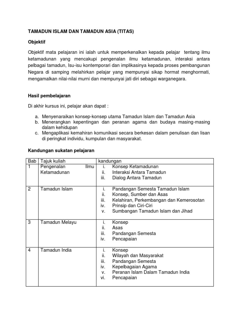 Modul kursus titas silibus baru sem 1. Buku ini menyentuh pembinaan dan perkembangan tamadun islam dan tamadun tamadun besar asia yang lain iaitu melayu cina dan india. Modul pengajian tamadun islam dan tamadun asia kandungan kata pengantar prakata 1 pengenalan ilmu ketamadunan 2 1 1 pengenalan 1 2. Usd 21 00 buku ini menyentuh pembinaan dan perkembangan tamadun islam dan tamadun tamadun besar asia yang lain iaitu melayu cina dan india.