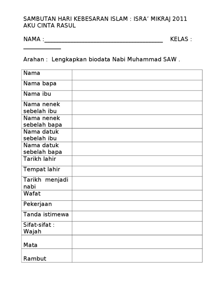 Muhammad bin abdullah bin abdul muttalib bin hashim nama bapa. 12 rabiulawal tahun gajah bapa bapa saudara. Nabi muhammad s a w merupakan rasul dan nabi terakhir bagi umat manusia dan seluruh alam. A 5 orang b 7 orang 9 siapakah nama datuk sebelah ibu nabi muhammad.