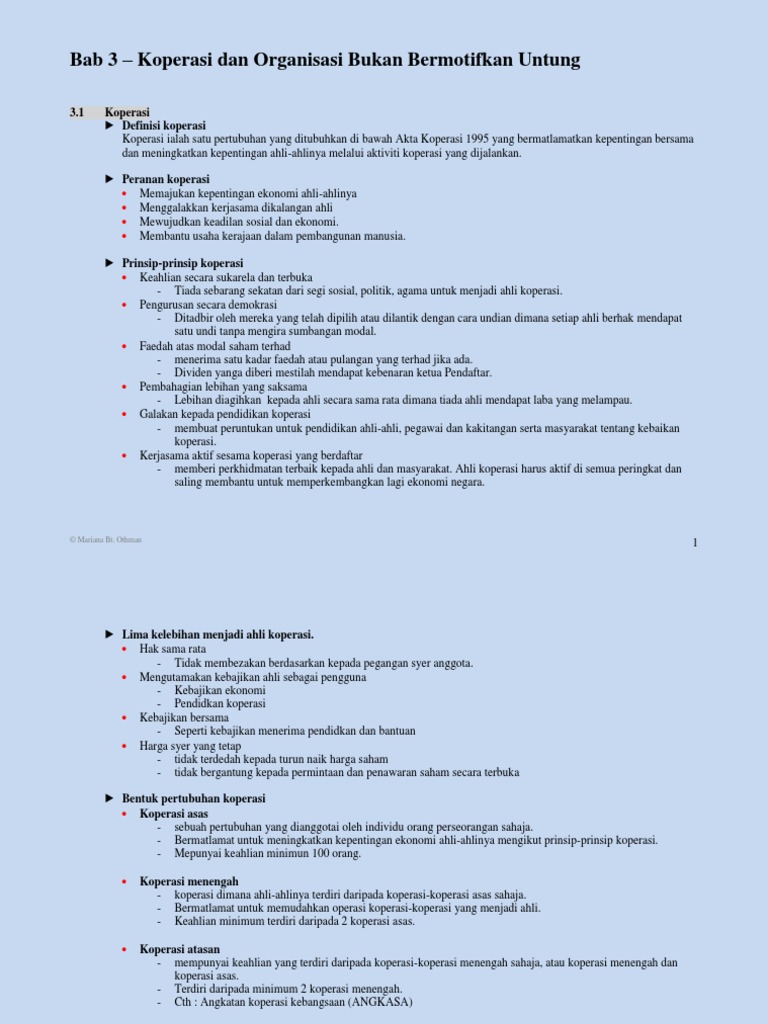 Mempunyai ahli yuran sebagai sumber pendapatan organisasi menjalankan aktiviti untuk memenuhi. Sebuah perniagaan yang mempunyai objektif berorientasi kepada kebajikan ahli masyarakat dan memberikan perkhidmatan kepada orang ramai. Diunggah oleh nurja nasir. Pendaftaran dibuat di pejabat pendaftaran.
