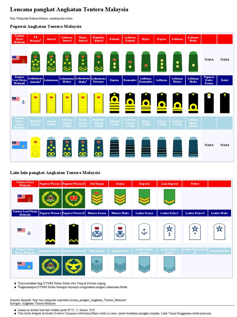 تنترا دارت مليسيا is the land component of the malaysian armed forces steeped in british army traditions the malaysian army does not carry the title royal malay. Tentera darat malaysia pegawai waran i pegawai waran ii staf sarjan sarjan koperal lans koperal prebet. Tentera darat malaysia fil marsyal 1 jeneral leftenan jeneral mejar jeneral brigedier jeneral kolonel leftenan kolonel mejar kapten leftenan leftenan muda. Jawatan pangkat lencana dalam pentadbiran atau organisasi angkatan tentera malaysia atm.