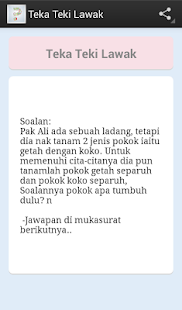 Pantun teka teki dan jawapan. Koleksi teka teki lawak lucu dan kelakar yang kami sediakan disini pastinya akan mencabar minda yang kreatif anda semua. Sesiapa yang suka teka teki laman web ini menyediakan pelbagai koleksi soalan teka teki berbahasa melayu yang sesuai untuk kanak kanak dan orang dewasa bermain. Pantun teka teki adalah pantun yang berisikan teka teki dan dapat digolongkan sebagai salah jenis permainan dalam karya sastra. Perkongsian teka teki pantun dan jawapan.
