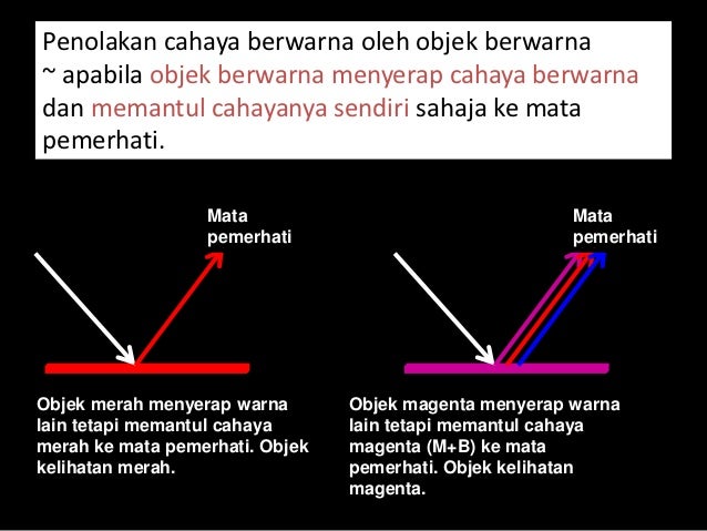 Penolakan cahaya warna cahaya yang sama dengan objek legap akan dipantulkan ke mata dan warna lain akan diserap. Sistem dan struktur bumi. Muat turun buku teks digital. Contoh penambahan dan penolakan cahaya monitor komputer dan televisyen pemeriksaan dengan kanta pembesar yangg cukup kuat akan mendedahkan bahawa setiap piksel dalam crt lcd dan paparan video berwarna lain terdiri daripada sub piksel merah hijau dan biru cahaya yang digabungkan dalam pelbagai perkadaran untuk menghasilkan warna lain serta putih dan warna kelabu.