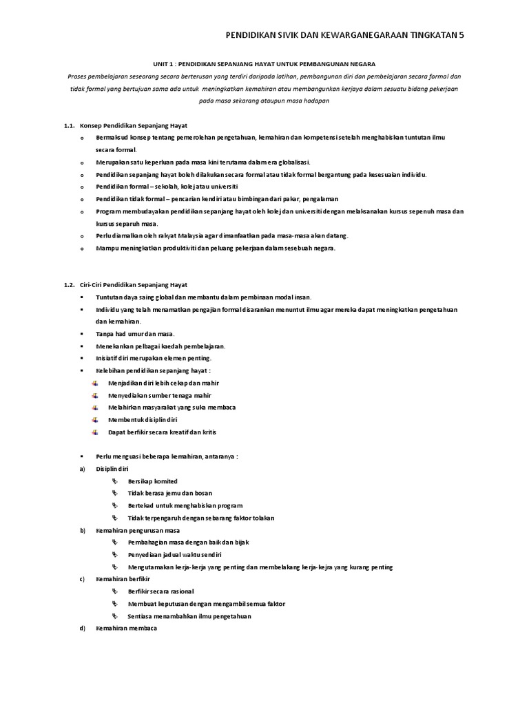 Pendidikan sivik dan kewarganegaraan tingkatan 5 tema tajuk hasil pembelajaran cadangan aktiviti 1. Pendidikan sepanjang hayat bermaksud suatu proses pembelajaran yang berterusan bagi tujuan meningkatkan pengetahuan dan kemahiran seseorang. Menjaga dan mengekalkan perpaduan dalam kalangan kaum. Mewujudkan sistem sosial dan pendidikan yang boleh melahirkan modal insan bertaraf dunia masyarakat.