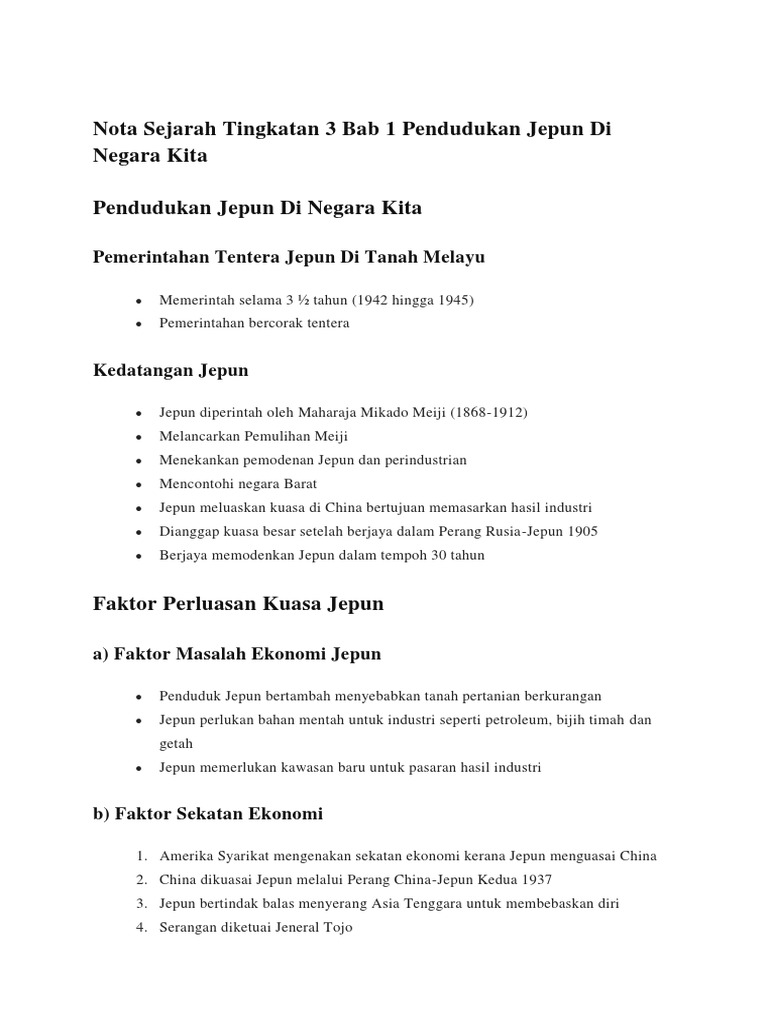 Walaupun tidak ada hukuman yang pernah dikenakan ke atas jenayah yang dilakukan semasa di nanking komando tinggi jepun telah memperhatikan kemarahan antarabangsa dan pergolakan pendapat awam yang disebabkan oleh tindakan mereka. Negara kita berada dalam cengkaman jepun selama kira kira tiga tahun setengah iaitu bermula dari 15 februari 1942 hingga 12 september 1945. Sejarah tingkatan 4 kssm sarapa ismail mrsm pengkalan. 2020 f4 science notes kssm chapter 4 6.