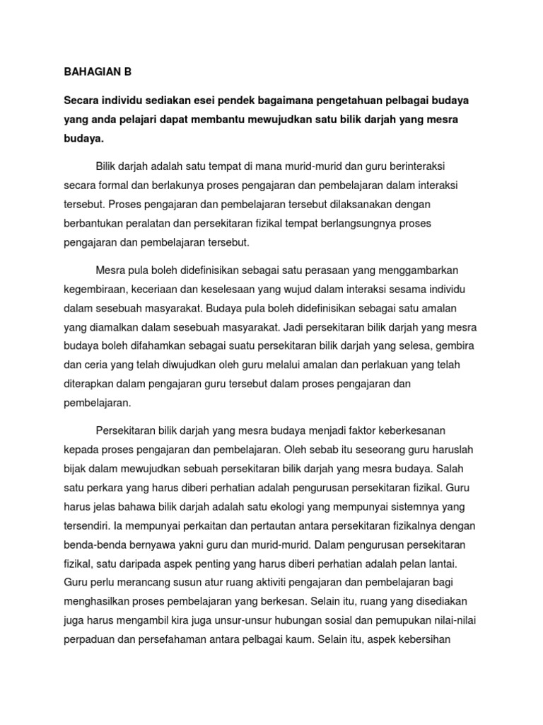 Pengalaman dan perasaan anda apabila berinteraksi dengan pelajar pelajar dari etnik yang pelbagai. Guru hendaklah berbincang dengan pelajar pelajar dan terangkan bagaimana lawatan itu akan membawa faedah kepada mereka. Guru memberitahu tarikh tempat lawatan serta bayaran yang dikenakan. Pelajar mengenali antara satu sama lain walaupun daripada etnik yang berlainan. Dengan pelajar pelajar dari etnik lain.