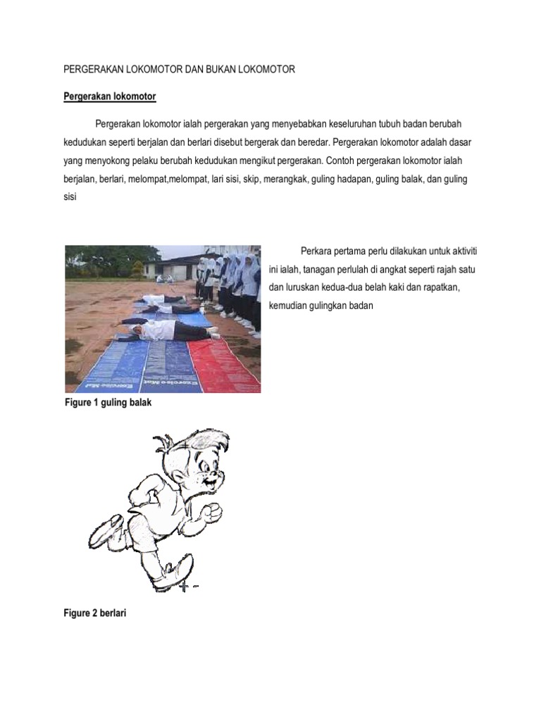 Pergerakan lokomotor dan bukan lokomotor. Pergerakan ini juga dapat menguji ketahanan jasmani emosi rohani intelek dan sosial. Pergerakan asas merupakan salah satu proses pengajaran dan pembelajaran yang memberi pendedahan kepada pelajar berkaitan dengan tiga pergerakan utama iaitu lokomotor dan bukan lokomotor. Melalui aktiviti pergerakan asas lokomotor dan bukan lokomotor ini muriddapat melakukan pergerakan asas dengan betul dan menguatkan otot untukkegiatan yang lebih cergas selain itu murid juga dapat mempersiapkan diriuntuk melakukan kemahiran sukan dan permainan. Sekian dulu pembahasan singkat mengenai pengertian contoh dan manfaat gerak lokomotor.