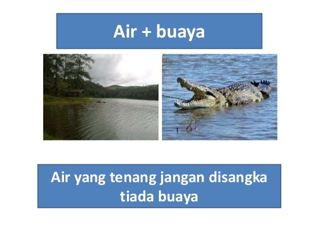 Peribahasa air yang tenang jangan disangka tiada buaya. Faridah itu umpama air yang tenang jangan disangka tiada buaya walaupun dia sentiasa pendiam tetapi bijak dan berani memberikan pendapat. Yang kerap dibaca. Peribahasa air yang tenang jangan disangka tiada berbuaya merupakan peribahasa berbahasa indonesia yang dimulai dengan huruf a. Bidalan air yang tenang jangan disangka tiada buaya merupakan satu peribahasa lama yang sering digunakan oleh orang ramai jika sesuai keadaanya.