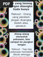 Air tenang jangan disangka tiada buayanya. Ia memberi makna sebagai orang yang tidak banyak berca kap jangan disangka bodoh atau penakut peribahasa ini memang selalu digunakan dikalangan masyarakat dimana memang terdapat jenis orang yang pendiam tetapi jangan salah sangka mereka ini bodoh. Peribahasa melayu dan inggeris blog design by ipietoon. Orang yang sangat perhitungan atau berhati hati dalam mengeluarkan uang.