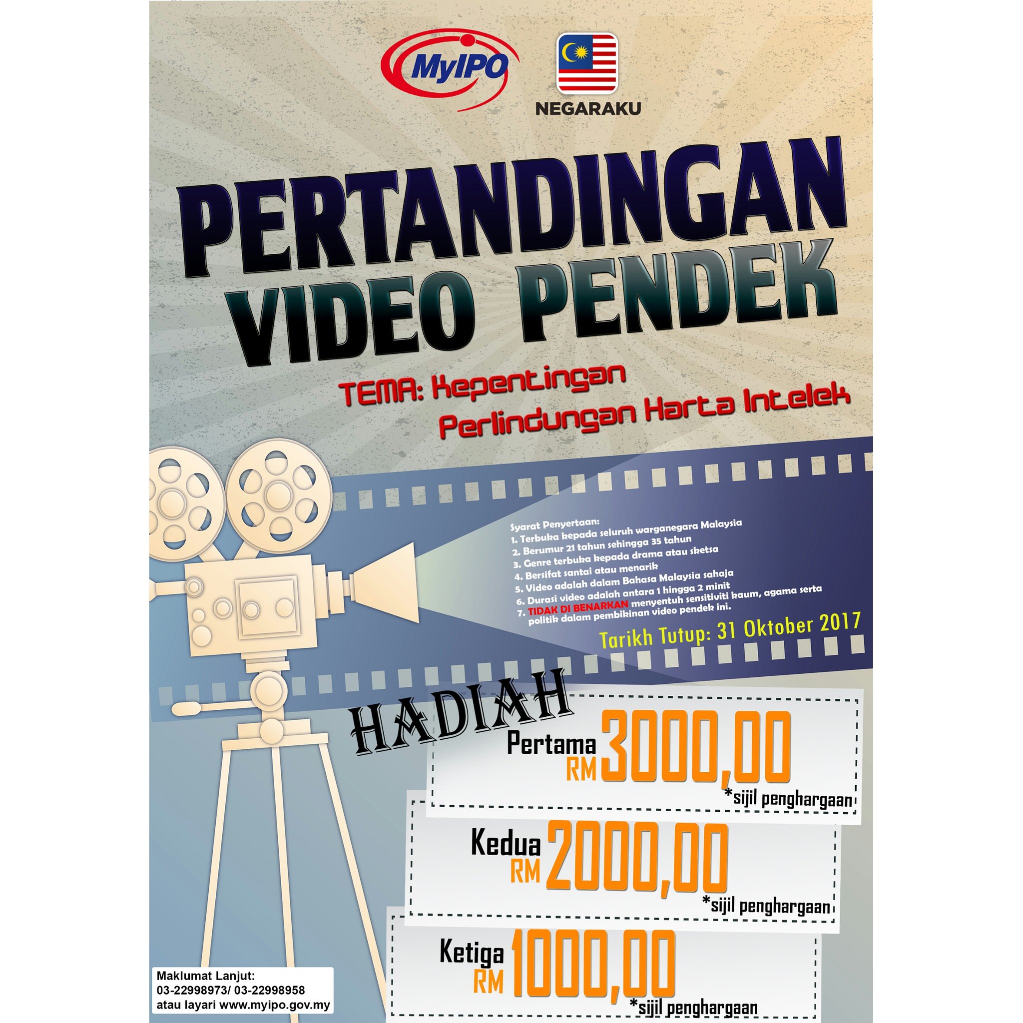 Zahara salleh anm gov my lobitah gustin anm gov my 4 0 kriteria penghakiman 4 1 keseluruhan video pendek yang dihantar oleh peserta akan dinilai. Kongsikan idea anda bersama intellectual property corporation of malaysia myipo di pertandingan video pendek ini. Pastikan video anda tidak. Segala detail pertandingan boleh rujuk di sini.