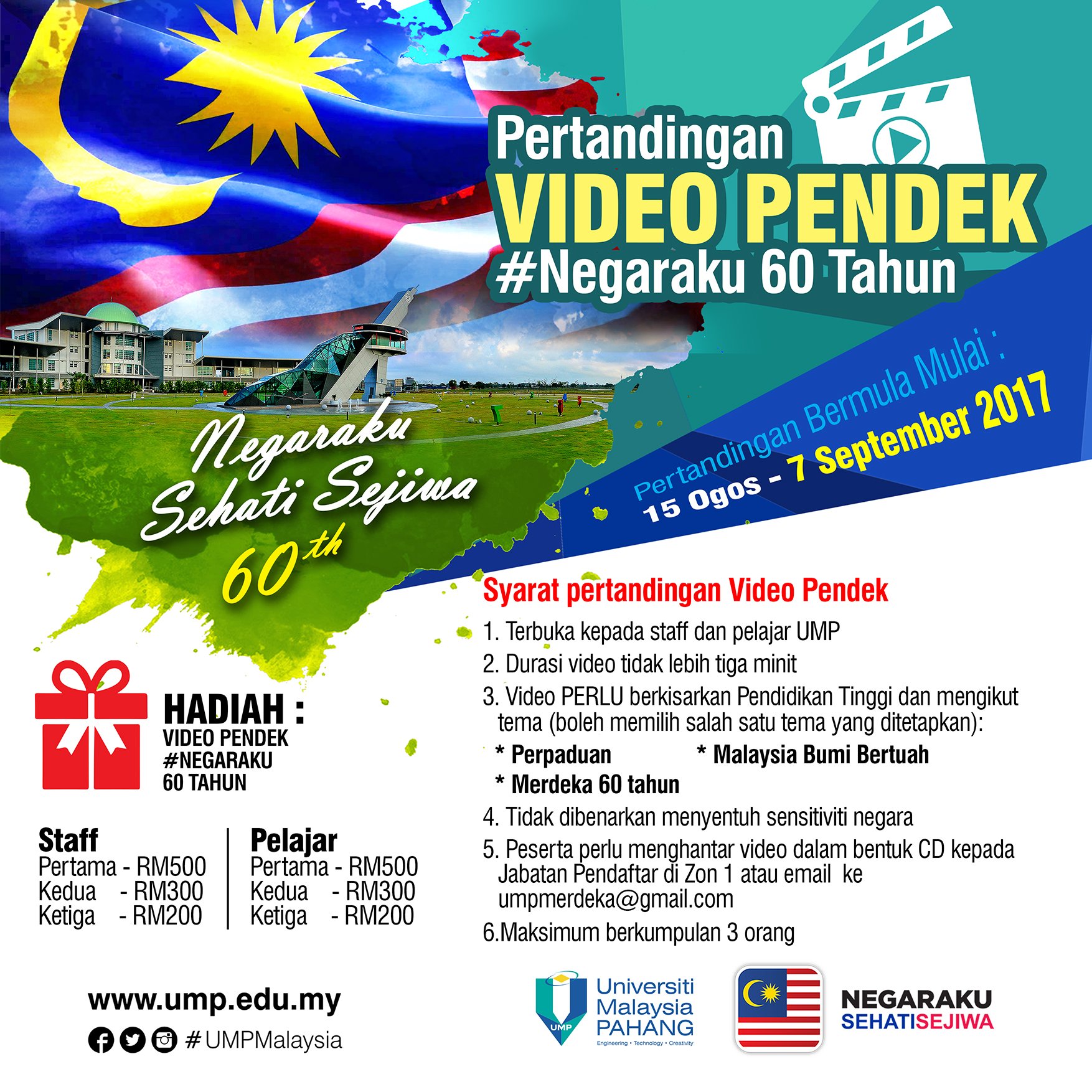Promosi pelancongan 2017 melalui pertandingan foto video pendek kementerian pelancongan dan kebudayaan malaysia akan melaksanakan pertandingan foto dan video pendek di media sosial dengan subtema mycuisine mulai 1 januari 2017 hingga 28 februari 2017. Pertandingan dibahagikan kepada dua kategori iaitu penulisan untuk bahasa malaysia dan bahasa inggeris serta kreatif digital berbentuk video pendek terbuka kepada warga negara berusia 30 tahun ke bawah. Sukacita dimaklumkan sempena ulang tahun ptptn ke 20 pada november depan ptptn menganjurkan pertandingan video pendek 20 tahun ptptn mulai 15 september 2017 14 november 2017. Jadi apa tunggu lagi saksikan ketiga.