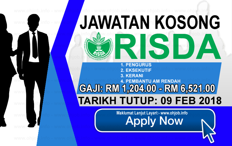 Pihak berkuasa kemajuan pekebun kecil perusahaan getah mempelawa calon berkelayakan dan memenuhi syarat syarat yang ditetapkan untuk memohon mengisi kekosongan kerja seperti yang diiklankan di bawah. Permohonan adalah dipelawa untuk warganegara malaysia yang berumur tidak kurang daripada 18 tahun tertakluk keada pada tarikh tutup iklan jawatan serta berkelayakan untuk mengisi kekosongan jawatan kosong pihak berkuasa kemajuan pekebun kecil perusahaan getah risda. Risda ditubuhkan pada 1 januari 1973 di bawah risda ditubuhkan pada 1 januari 1973 di bawah akta pihak berkuasa kemajuan pekebun kecil perusahaan getah akta 85 tahun 1972. Ketua unit pentadbiran dan kewangan pg4 3.