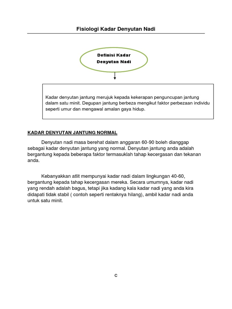 Berbeza bergantung kepada keperluan oksigen oleh badan. Pengesanan tekanan sistolik dan distolik. Individu yang sihat jantungnya adalah mereka yang mengamalkan gaya hidup sihat dan sangat aktif dalam melakukan aktiviti fizikal dalam kehidupan seharian. Kadar degupan jantung seseorang dalam keadaan rehat atau ketika tidak menjalankan sebarang aktiviti.