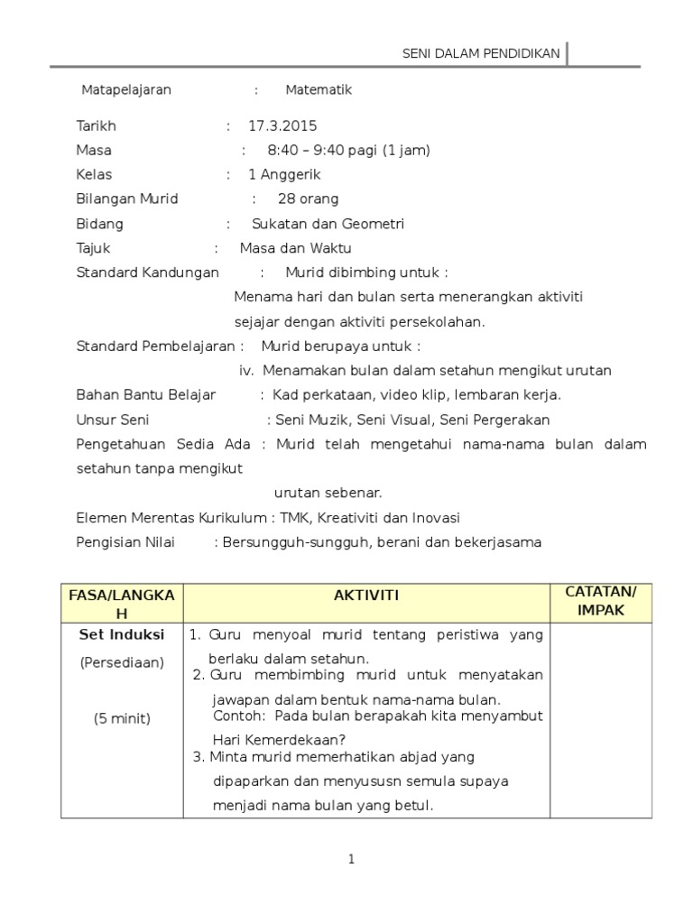 Keluar mari kenal jam mari kenal jam. Bidang sukatan dan geometri tajuk masa dan waktu standard. Himpunan rph tahun 1 padat dan lengkap adalah rancangan pengajaran harian untuk seluruh subjek tahun 1 ianya merupakan satu rekod khas yang disediakan lebih awal oleh guru sebelum menjalankan sesi pengajaran dan pembelajaran di bilik darjah. Rancangan pengajaran harian matematik.