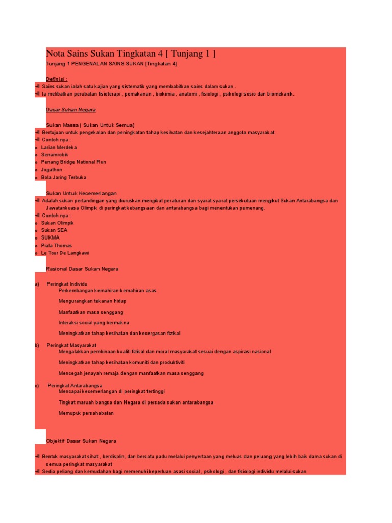 Sains sukan tingkatan 6 bab 4. 4 1 sistem pencernaan manusia bab 4 pemakanan sukan 4 7 penokok diet dan prestasi sukan 4 6 keperluan air 4 5 pengambilan makanan dalam sukan 4 3 piramid makanan 4 2 pengkelasan nutrien 4 4 kepentingan pemakanan sukan 3. Kemungkinan kecederaan otot atau tisu otot terkoyak juga boleh berlaku sekiranya aktiviti sukan yang dilaksanakan tidak. Tenaga kuat ini dihasilkan oleh bahan radioaktif kita akan mengkaji sedikit tentang bahan radioaktif. Sains sukan portal ini bertujuan untuk membantu pelajar tingkatan 4 5 dan 6 dalam memudahkan pencarian maklumat di samping mendapatkan maklumat terkini memudahkan guru memberikan latihan dan tutorial serta memudahkan pelajar mendapatkan soalan latihan nota dan kuiz.