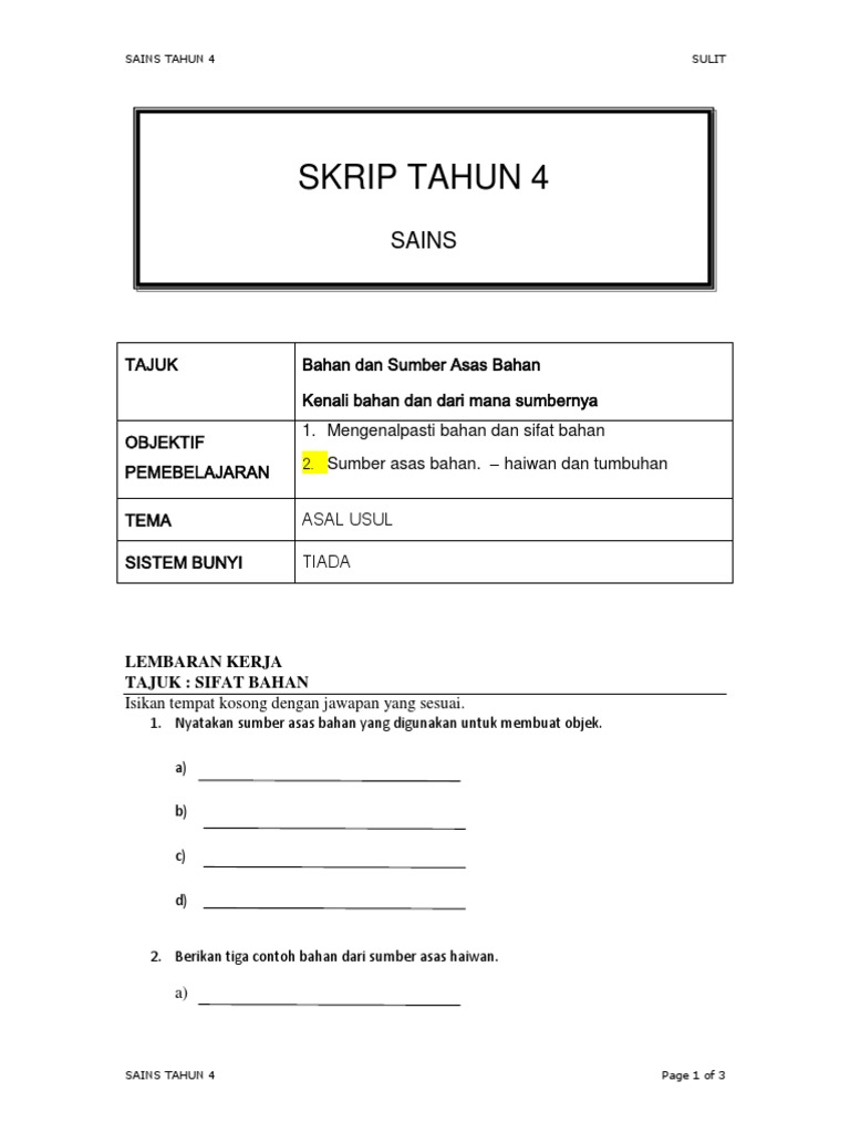 Para pelajar perlu diuji melalui pelbagai kaedah penilaian bagi mengetahui sejauh mana pemahaman mereka dengan kemahiran yang telah diajar oleh guru. Tahun 5 topik 10 kuiz rancangan mainan. Latihan sains tahun 4. Sifat bahan sains tahun 4 organ pernafasan manusia pernafasan manusia pengelasan bahan sains tahun 4.