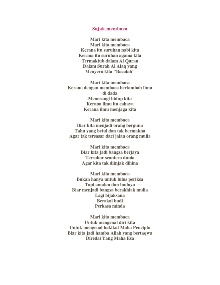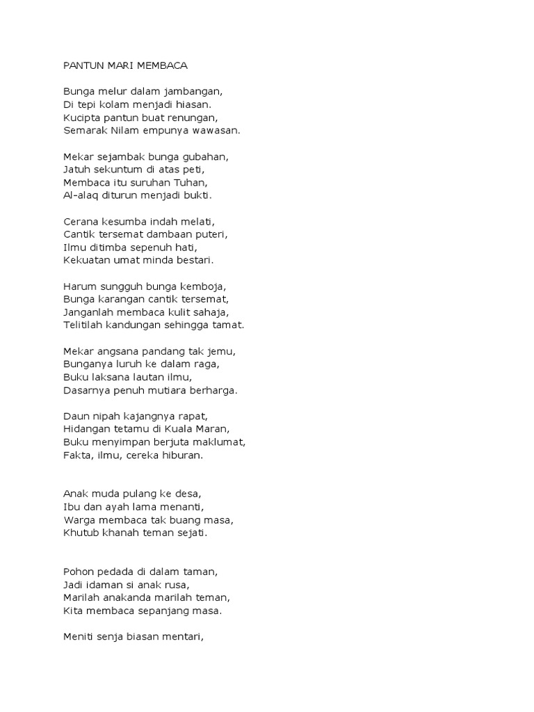Membaca dapat meluaskan pengetahuan. Kita juga dapat mengetahui perkara perkara baru dalam pelbagai bidang ilmu seperti sejarah sastera ekonomi sains dan matematik. Sajak merindui buku a. Membaca mempunyai banyak kepentingannya kepada pembaca.