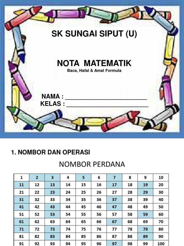 Jika suatu bilangan yang lebih besar daripada satu bukan nombor perdana maka. Kongsi ke twitter kongsi ke facebook kongsi ke pinterest. 1 3 iv menyelesaikan masalah harian yang melibatkan nombor 13 bulat perpuluhan dan pecahan melibatkan operasi. Senaraikan semua nombor daripada 1 hingga 100.