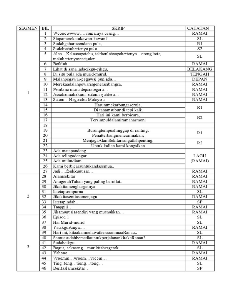 Skrip bicara berirama segmen skrip catatan 1 assalamualaikum ramai dan salam 1ma.