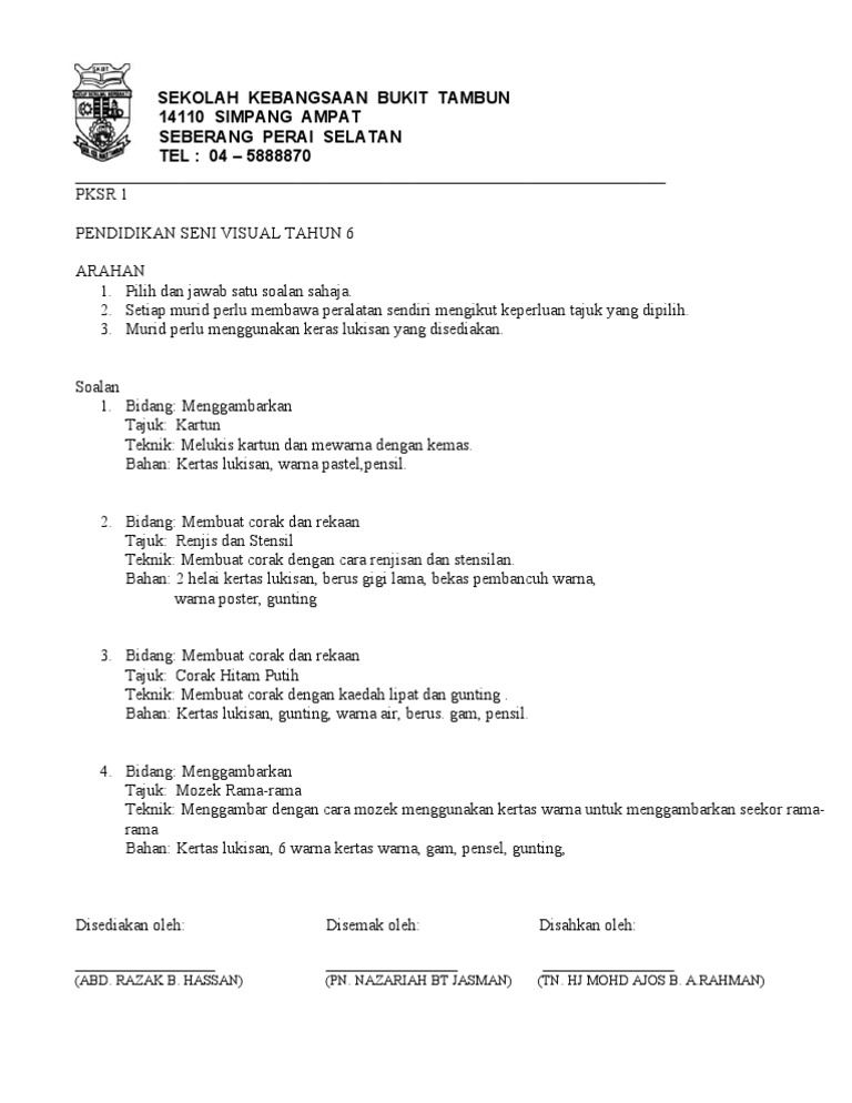 Soalan pendidikan seni visual tahun 5. Selepas download terus cetak soalan soalan ini dan buat latihan. Corak ialah susunan motif sama ada. Kepada ibu bapa guru guru dan pelajar yang terlibat bolehlah merujuk kepada kalendar sekolah yang berkenaan untuk memastikan. Rph pendidikan seni visual tahun 5 adalah rancangan pengajaran harian yang perlu disediakan lebih awal oleh guru sebelum menjalankan sesi pegajaran dan pembelajaran rancangan pengajaran harian ini dibina sebagai panduan para guru untuk mengajar dengan lebih sistematik dan efektif serta mampu untuk mencapai apa yang diobjektifkan dalam sesi pengajaran dan pembelajaran kelak.