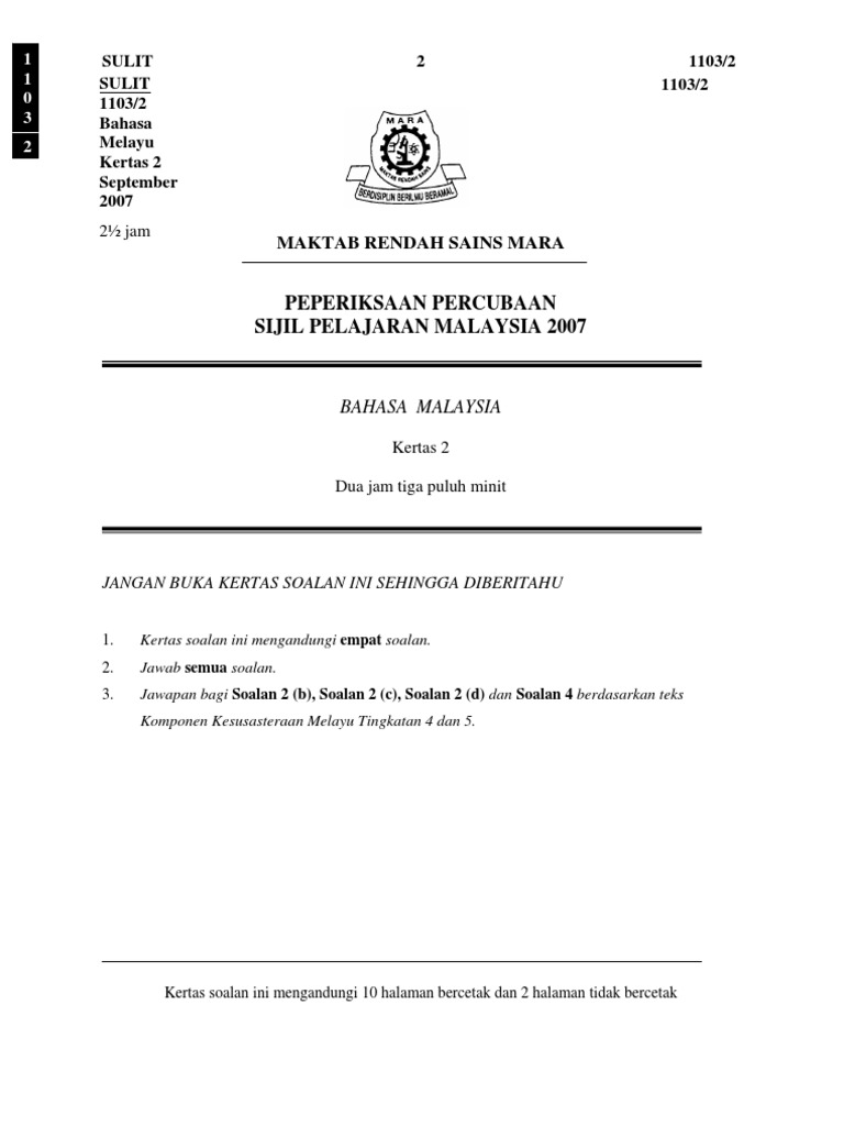 Bank soalan spm koleksi soalan. Selain itu seterusnya contoh. Pulau pinang bahasa melayu kertas 1 bahasa melayu kertas 2 skema bahasa melayu k1 dan k2 2. 23 october 2011.