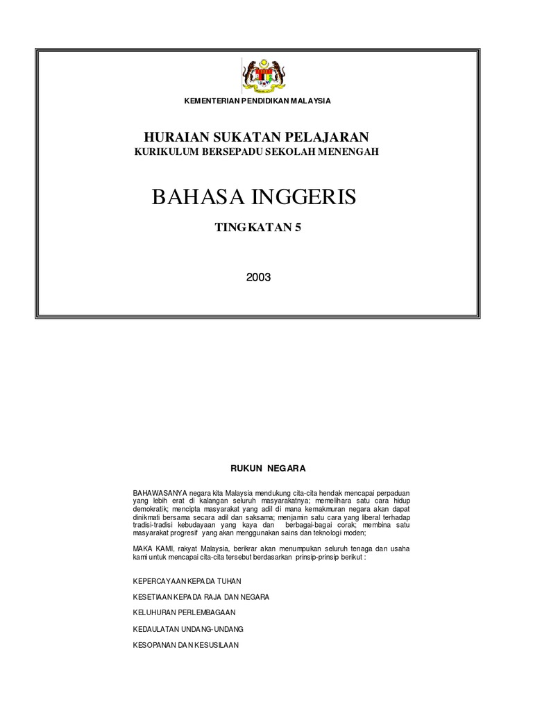 Huraian sukatan pelajaran bahasa inggeris tingkatan 3. Berikut merupakan huraian sukatan pelajaran bahasa inggeris tingkatan 5. The syllabus the english syllabus at the secondary level specifies the content to be taught from form 1 through to form 5. Koleksi arkib sukatan pelajaran dokumen rujukan sukatan pelajaran dskp tingkatan peralihan 1 5 huraian sukatan pelajaran dan dokumen standard kurikulum prestasi dskp bagi mata pelajaran mata pelajaran yang telah dikumpul dan diarkibkan dalam laman ini.