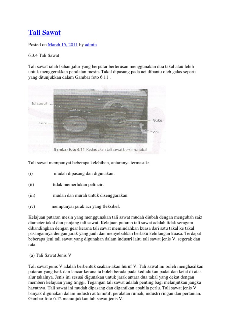 Berdasarkan gambar di bawah. Fungsi tali sawat kereta. Takal dan tali sawat tali sawat digunakan untuk menghubungkan takal pemacu yang dipasang pada enjin atau motor elektrik dengan takal pemacu. Tali atau kabel rantai menempati alur tersebut yang mana ia disambungkan kepada beban pada satu hujung dan daya dikenakan untuk.