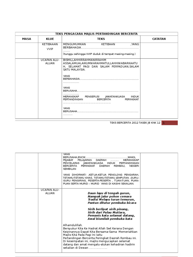 11 00 pagi terima kasih saudari pengerusi majlis. 18 jun 2011 tempat. Skrip pengacara majlis bulan bahasa kebangsaan bulan bahasa kebangsaan 2010 1 yang berbahagia tn hj mhd ramli bin che mat pengetua smk permaisuri nur zahirah. A dan b ialah dua orang pengacara bertugas.
