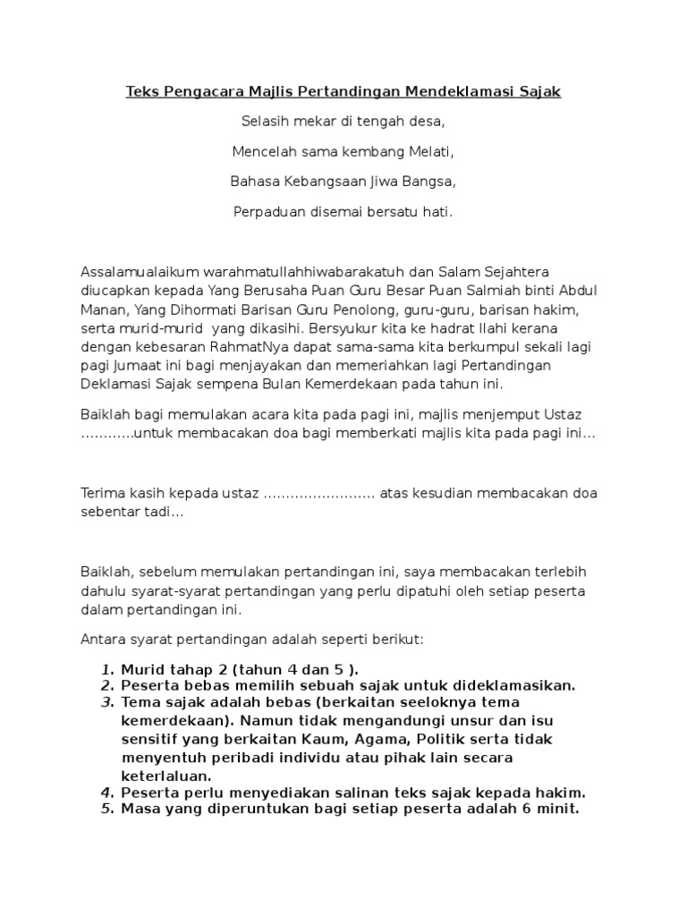 Teks ucapan pengetua majlis penutupan pertandingan deklamasi sajak bahasa tamil sekolah sekolah menengah daerah gombak 2011 tarikh. Have fun di dalam majlis tersebut untuk elakkan tekanan semasa mengacarakan majlis. Borang pemarkahan pertandingan deklamasi sajak karnival bahasa malaysia peringkat pkg pokok sena.