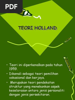 Teori pemilihan kerjaya holland 1959. Seperti yang tercatat cli muka surat tajuk clan kulit kertas projek. Pada awal munculnya teori bimbingan dan konseling yang berawal dari pelaksanaan vocational guidance bimbingan jabatan banyak tokoh yang berusaha untuk menganalisis vocational guidance dari beberapa sudut pandang yang berbeda beberapa tokoh itu antara lain bordin happock donald e. New jersey prentice hall. Teori pemilihan kerjaya holland merupakan hasil kajian holland terhadap personaliti yang memfokus kepada tipologi dan banyak dipengaruhi oleh tret dan faktor.