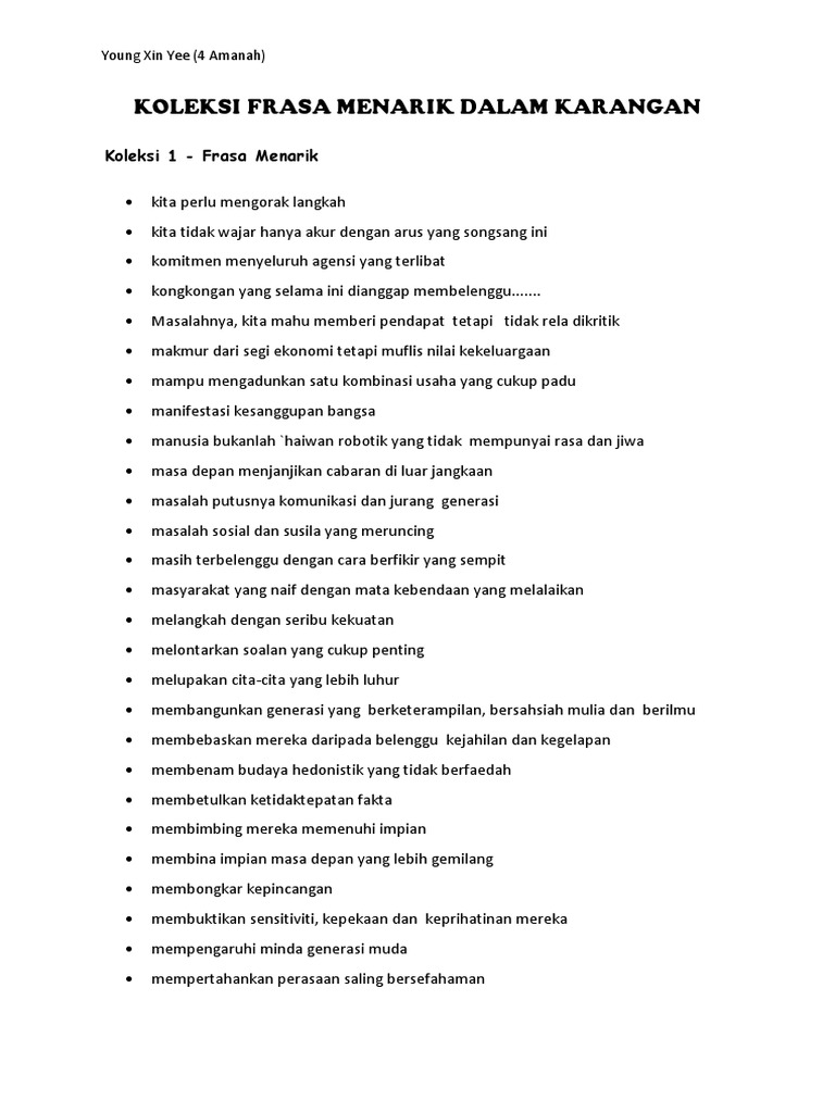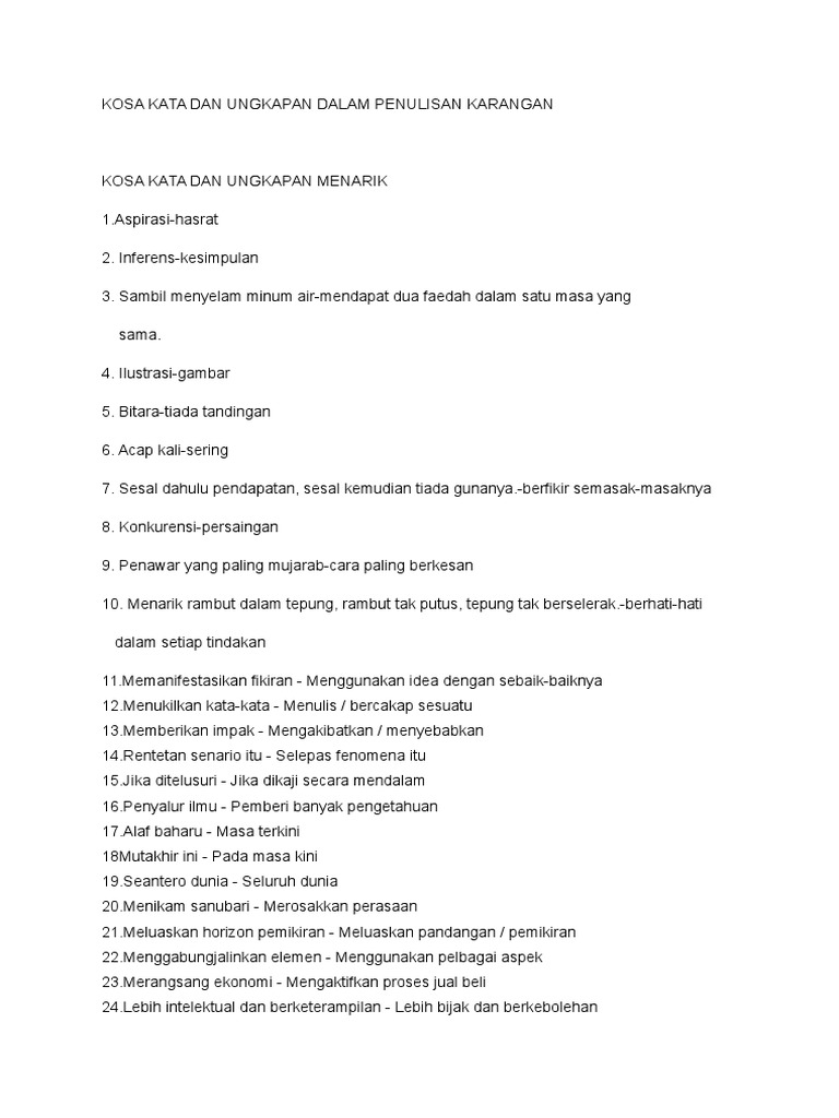 Kosa kata dan ungkapan menarik dalam penulisan karangan kosa kata dan ungkapan menarik. Semoga perkongsian bahan bahan rujukan panduan bahan pembelajaran dan pengajaran contoh contoh karangan sumber rujukan spm sijil pelajaran malaysia tingkatan 4 tingkatan 5 dalam post di blog bumi gemilang berguna dan dapat membantu para pelajar dan pengguna. Prinsip moral merupakan aspek terpenting dalam kehidupan seseorang insan. Ungkapan menarik dalam karangan respons terbuka.