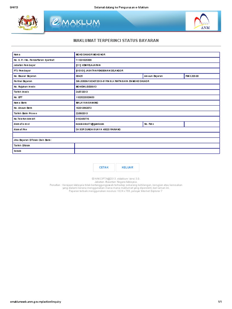 Www anm gov my e maklum. Untuk akses ke e maklum penyata gaji layari. Makluman operasi kaunter wang tak dituntut. Sistem e penyata gaji laporan janm. E melkan masalah atau aduan berkaitan sistem e penyata gaji laporan ke e mel rasmi epayslip anm gov my dengan menyertakan nama penuh no kp no gaji no kod pejabat perakaunan no kod jabatan dan no kod pusat pembayar.